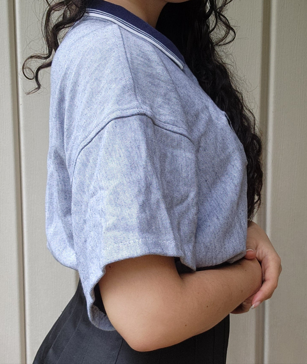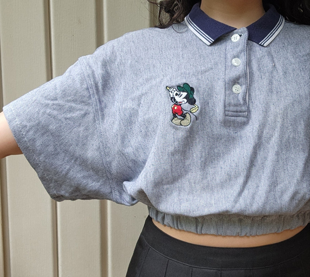 If urban nostalgia is your style, this top is perfect for you. Pair with a pleated skirt, or low-rise baggy pants.