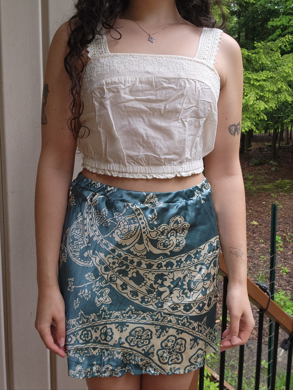 The Silky Paisley Mini is easy to dress up or down. Perfect for warm weather.
